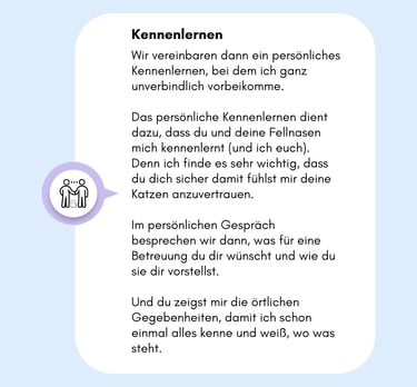 Ob deine Katze einfach Gesellschaft möchte, einen sensiblen Umgang braucht oder sogar spezielle Pflege benötigt – ich bin für sie da. Und für dich natürlich auch: Mit regelmäßigen Updates, Fotos und Videos, damit du beruhigt sein kannst.