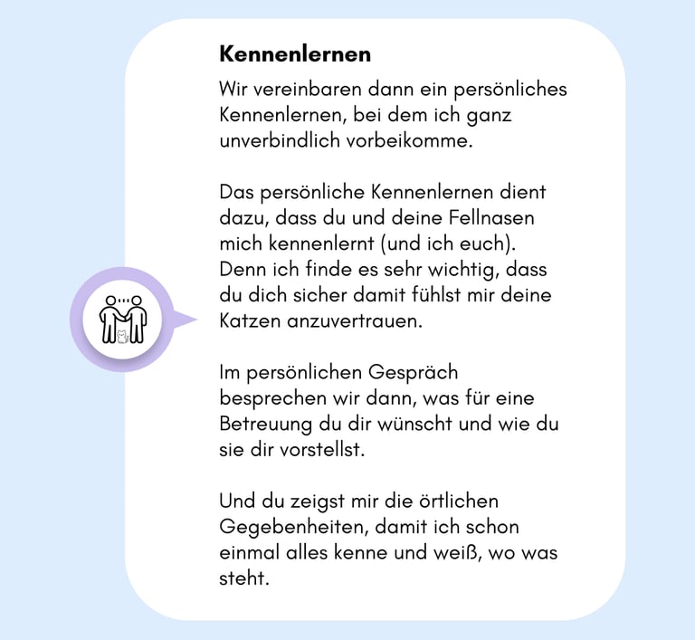 Katzen sind Gewohnheitstiere. Ein Ortswechsel bedeutet für viele enormen Stress. Mit Kitty’s Home bleibt deine Katze in ihrer gewohnten Umgebung – mit ihrem Lieblingsplatz, ihrem Futter, ihrem eigenen Rhythmus. Ich passe mich an ihre Bedürfnisse an, gebe ihr Zeit, Vertrauen zu fassen, und erkenne, was sie braucht.